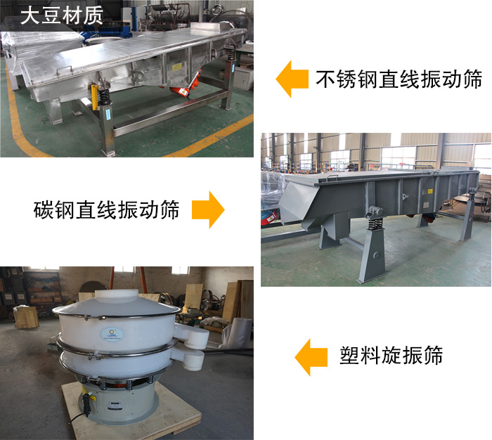 大豆的形態(tài)為種顆粒狀,旋振篩和直線振動篩都是篩分大豆的上乘選擇,旋振篩是高精度的篩分設(shè)備,篩分精度高,噪音低,設(shè)計精巧,且網(wǎng)孔不堵塞,粉末不飛揚,篩機可安裝至五層,分別曬出不同規(guī)格的大豆,價格相對較低;直線振動篩則具有耗能低,產(chǎn)量高,結(jié)構(gòu)簡單的特點,且其維修方便,全封閉結(jié)構(gòu),沒有粉塵的溢散,能與生產(chǎn)線相互連接,適合大規(guī)模、大產(chǎn)量的流水作業(yè),但是價格會比旋振篩高一些。