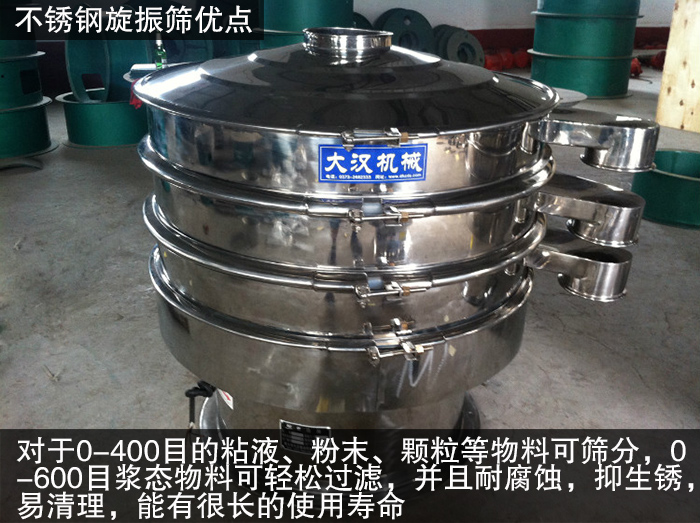 不銹鋼旋振篩材質(zhì)分為標(biāo)準(zhǔn)型旋振篩和全不銹鋼旋振篩兩種,前者是與物料接觸部分是不銹鋼,后者是整機(jī)不銹鋼材質(zhì)。研磨材料振動(dòng)篩使用的范圍廣泛,0-400目的粘液、粉末、顆粒等物料可篩分,0-600目漿態(tài)物料可輕松過(guò)濾;并且不銹鋼材質(zhì)耐腐蝕,抑生銹,易清理,能有很長(zhǎng)的使用壽命。