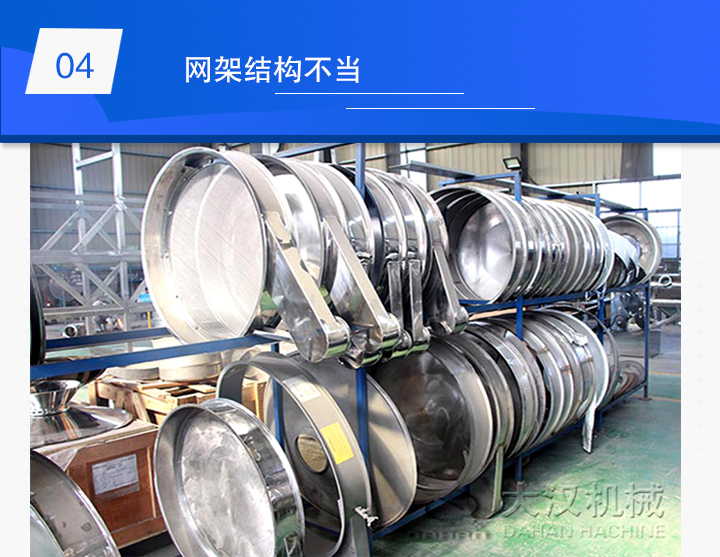 解決方法:對于這一問題小編建議使用膠粘網(wǎng)架結(jié)構(gòu)來進(jìn)行生產(chǎn)。膠粘網(wǎng)架結(jié)構(gòu)會很大程度的與篩框緊密可防止?jié){液物料的平跑料漏料問題,并且由于膠粘網(wǎng)架所用清網(wǎng)裝置的的拍擊力柔和所以不會使?jié){液物料跳起出現(xiàn)跳漿問題。