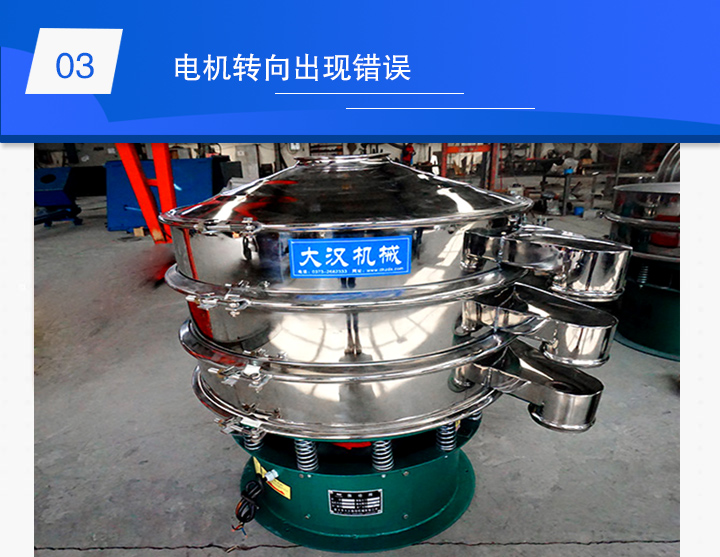解決方法:檢查并矯正漿液振動篩振動電機(jī)的轉(zhuǎn)向是否正確。首先卸下振動電機(jī)的護(hù)罩,檢查兩個電機(jī)的偏心塊旋向是否均向外側(cè)旋轉(zhuǎn);其次,如果轉(zhuǎn)向錯誤,請調(diào)換電控箱進(jìn)線電源中的任意兩根相線。