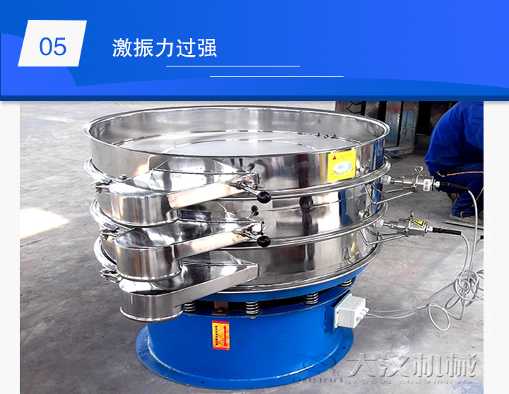 振動電機(jī)的激振力過強(qiáng),漿液進(jìn)入篩面上因受到的激振力過大,就會出現(xiàn)物料上跳的現(xiàn)象。