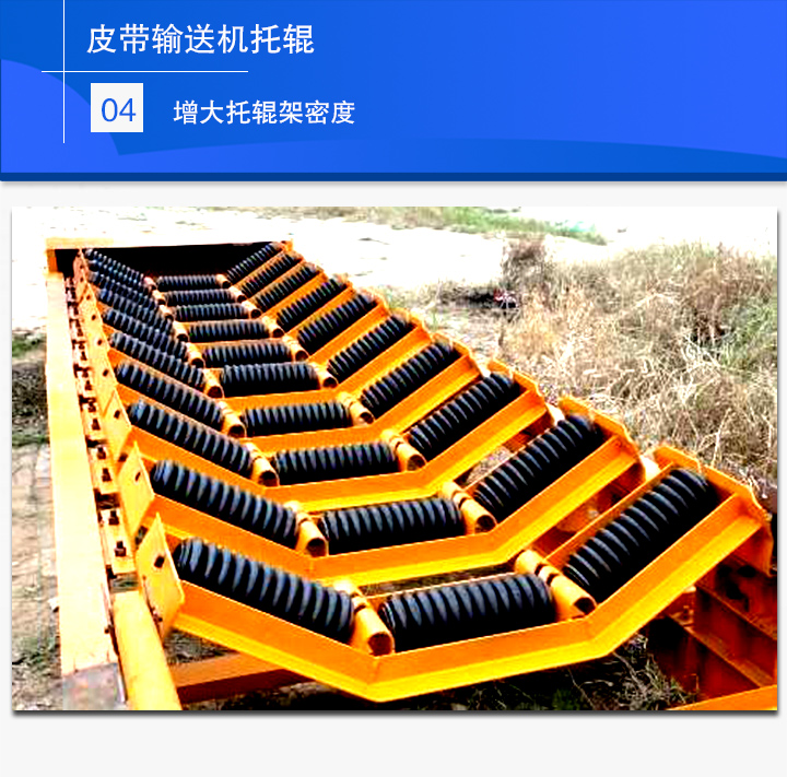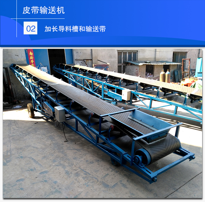 加長導料槽和輸送帶,并增設3到5米的網(wǎng)式導料護網(wǎng),以便于將物料擋住,使其順著輸送帶運行方向前移,而不致卡住或掉到托輥架與回程段輸送帶之間。