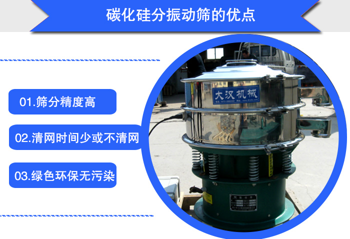碳化硅粉是粉末狀的物料,在篩分時會出現(xiàn)靜電、粘附、團聚導致卡堵網(wǎng)的現(xiàn)象,所以大漢機械的技術(shù)人員推薦使用超聲波振動篩。