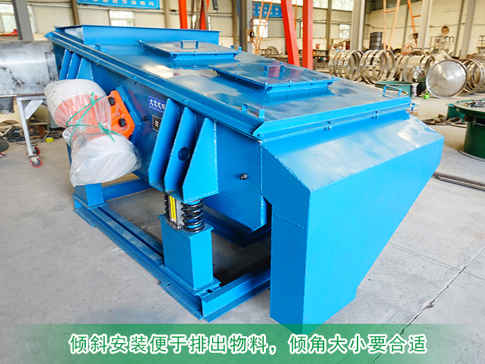 一般情況下,直線振動篩是傾斜安裝的,以便于排出篩上物料。傾角大小要合適,傾角過小,物料在篩面上運(yùn)動速度太慢,雖然篩分效率高,但直線篩的生產(chǎn)率減少;反之,傾角太大,物料排出太快,篩分效率降低。故篩面的傾角要適當(dāng)。