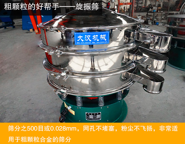 旋振篩和超聲波振動(dòng)篩都是適用于合金粉末篩分的設(shè)備,只不過應(yīng)用的顆粒目數(shù)及產(chǎn)品會(huì)有些差異,因此用戶選擇是一定要根據(jù)實(shí)際情況來選購適宜自己的產(chǎn)品。