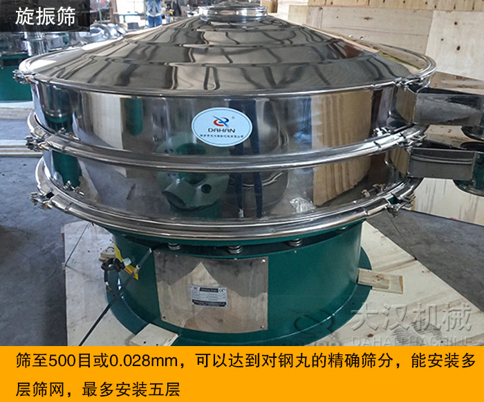 旋振篩篩網(wǎng)采用獨(dú)特的設(shè)計(jì),網(wǎng)孔不堵塞,粉末不飛揚(yáng),可以篩至500目或0.028mm??梢赃_(dá)到對(duì)鋼丸的篩分。