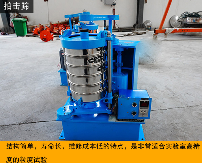 拍擊篩又叫做拍擊式標(biāo)準(zhǔn)振動(dòng)篩,適用于普通磨料的粒度組成檢查和超硬材料產(chǎn)品的生產(chǎn)分級(jí)及粒度檢查。廣泛的應(yīng)用于科研生產(chǎn)部門(mén)對(duì)固體材料的篩分機(jī)檢測(cè)。具有結(jié)構(gòu)簡(jiǎn)單,壽命長(zhǎng),維修成本低的特點(diǎn),是非常適合實(shí)驗(yàn)室高精度的粒度試驗(yàn)。