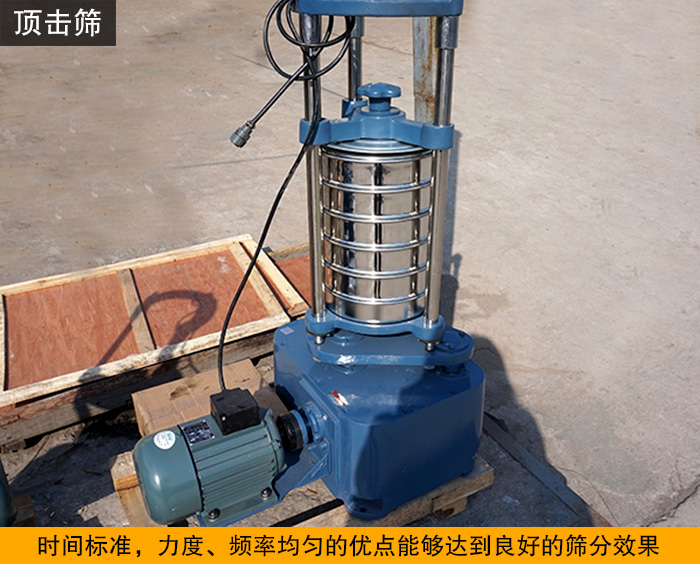 頂擊式標(biāo)準(zhǔn)振篩機(jī)又名頂擊式標(biāo)準(zhǔn)振動(dòng)篩,符合建材、地質(zhì)、交通,化工等等行業(yè)有關(guān)測(cè)試規(guī)范和要求。利用偏心的原理使機(jī)器的平臺(tái)面發(fā)生有規(guī)律震動(dòng)和頂擊,主要配套標(biāo)準(zhǔn)分樣篩使用,代替手工篩,篩分物料的級(jí)別。具有時(shí)間標(biāo)準(zhǔn),力度、頻率均勻的優(yōu)點(diǎn)能達(dá)到良好的篩分效果,適用于建筑、公路,地質(zhì)、冶金、化工、煤炭、磨料、食品、飼料,醫(yī)藥等部門(mén)的實(shí)驗(yàn)室或化驗(yàn)室對(duì)顆粒物料進(jìn)行篩分分析,篩可以配各種規(guī)格的方孔、圓孔標(biāo)準(zhǔn)套篩,是生化實(shí)驗(yàn)室、分析室、教育科研的必備篩分設(shè)備。
