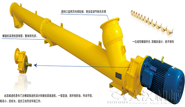3、低噪音、適應(yīng)性強:螺旋輸送機密封性好,外殼采用無縫鋼管制作而成,端部采用法蘭互相連接成一體,剛性好,既可以全封閉輸送,防止粉塵污染,利于,也可敞開輸送;
